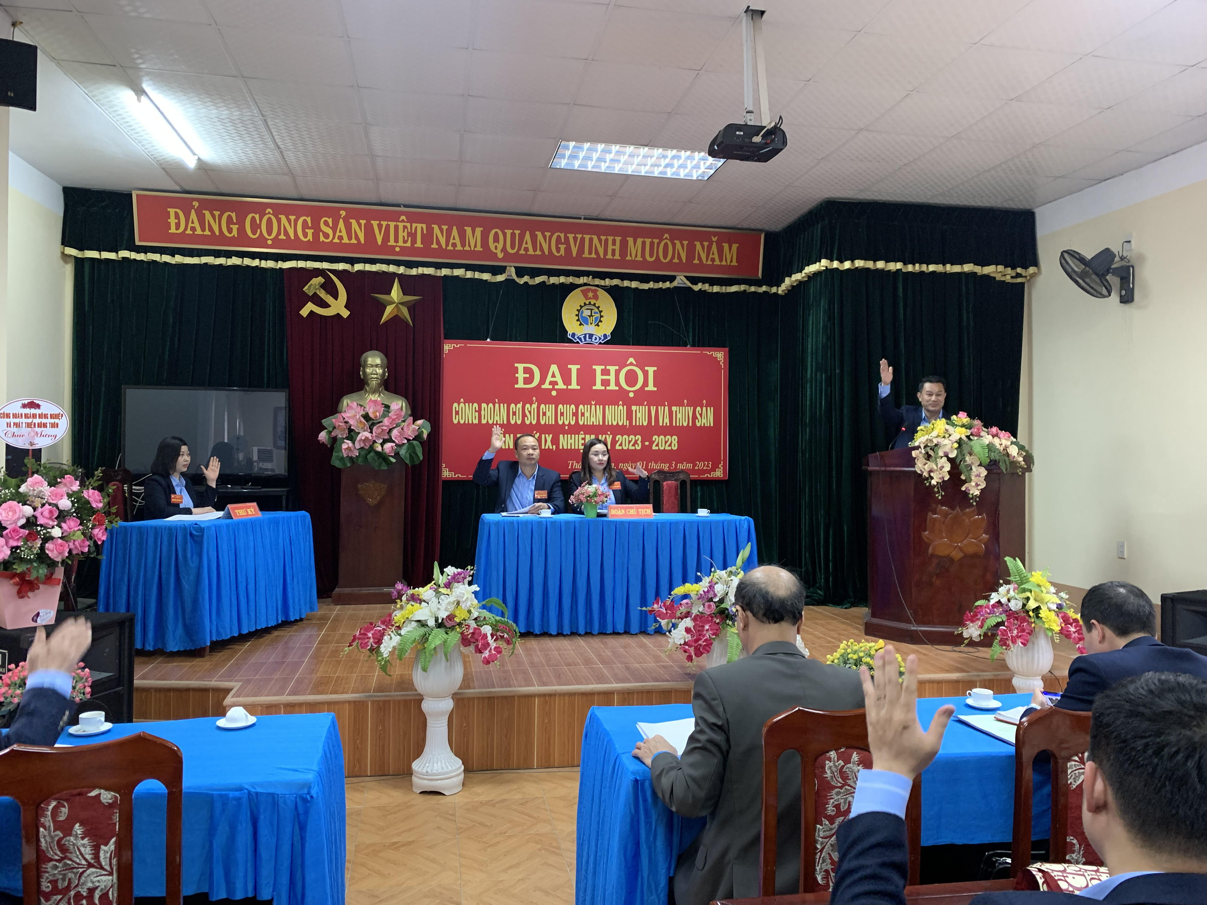 Với tinh thần nghiêm túc, trang trọng, thiết thực và tiết kiệm, Đại hội đã thực hiện đầy đủ các nhiệm vụ theo quy định của Điều lệ Công đoàn Việt Nam. Đại hội đã thống nhất quyết nghị với 100% ý kiến tán thành; Tại Đại hội đã thông qua kết quả bầu cử BCH công đoàn cơ sở Chi cục chăn nuôi, thú y và Thủy sản khóa IX, nhiệm kỳ 2023-2028 gồm 05 Ủy viên, đại diện cho tâm tư, tiếng nói của công chức, viên chức, người lao động và đoàn viên Công đoàn.