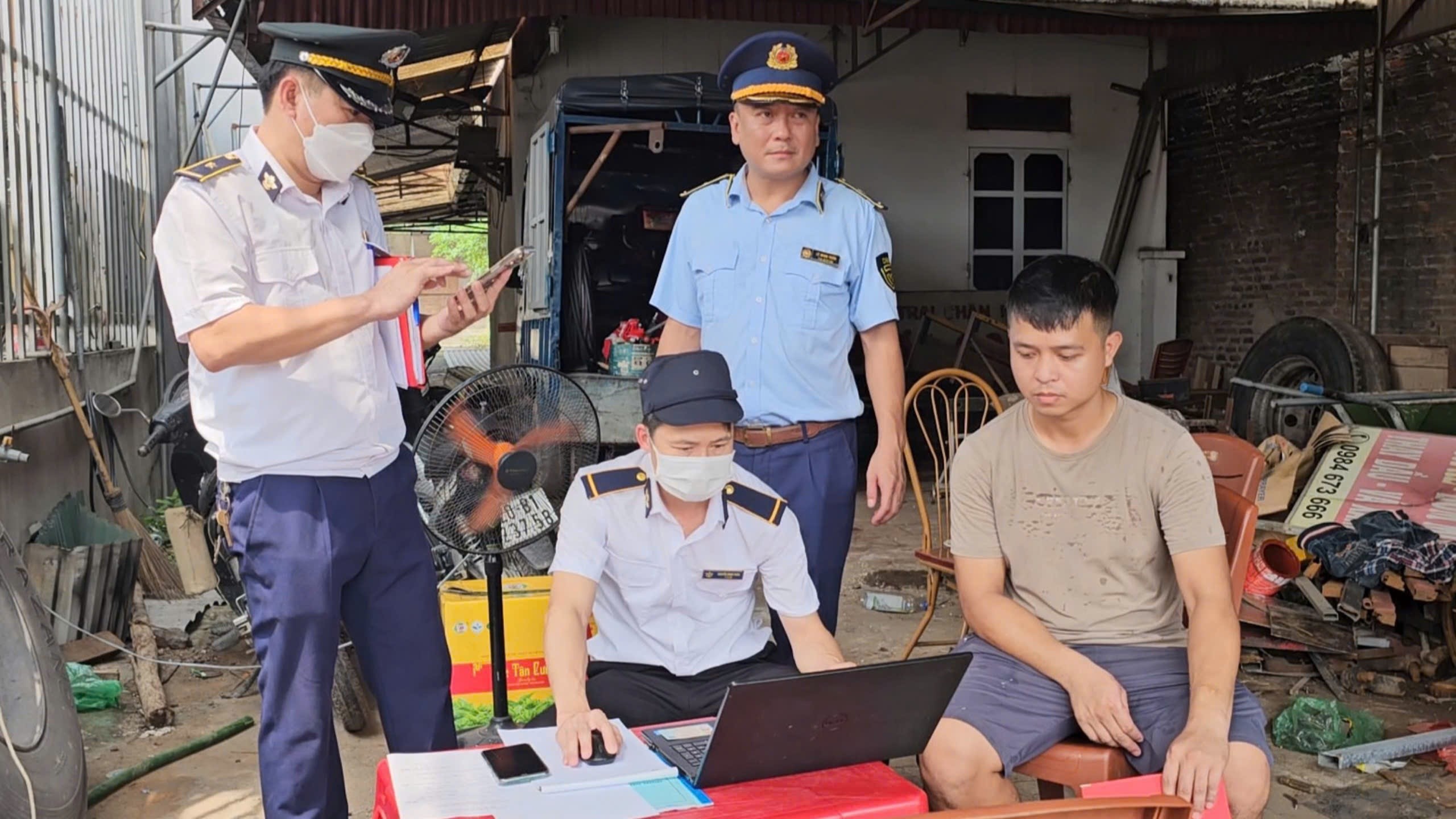 Hình 2: Đoàn kiểm tra tiến hành lập biên bản VPHC